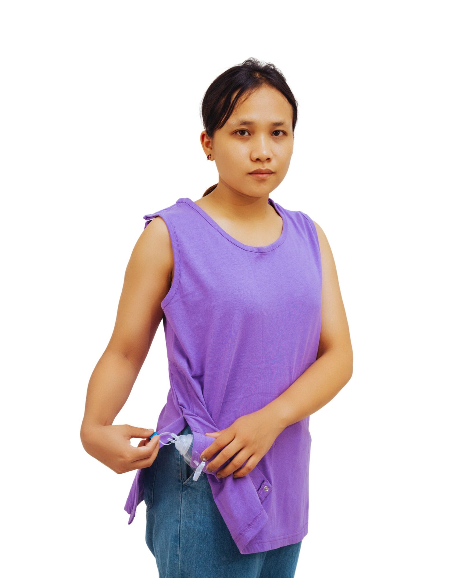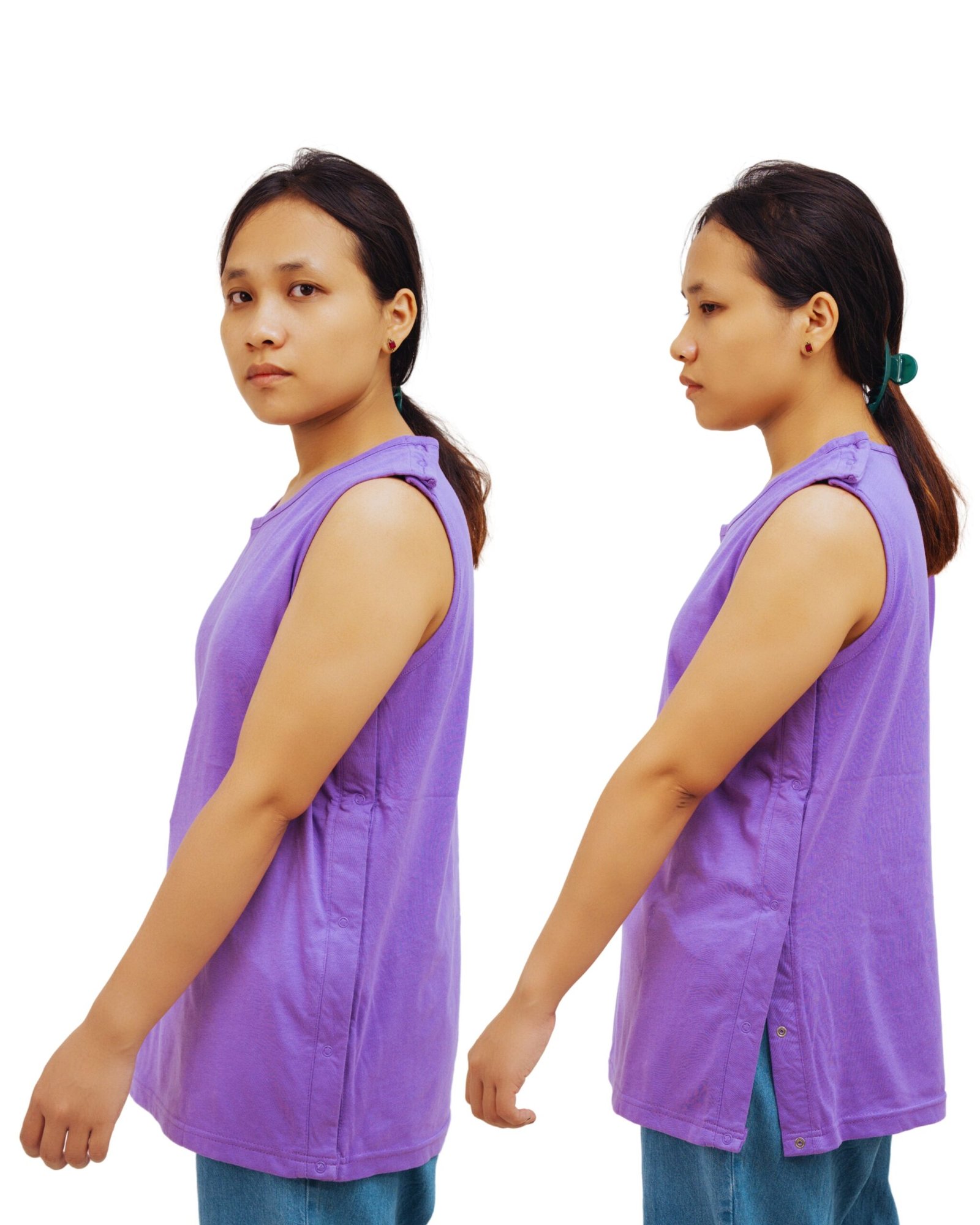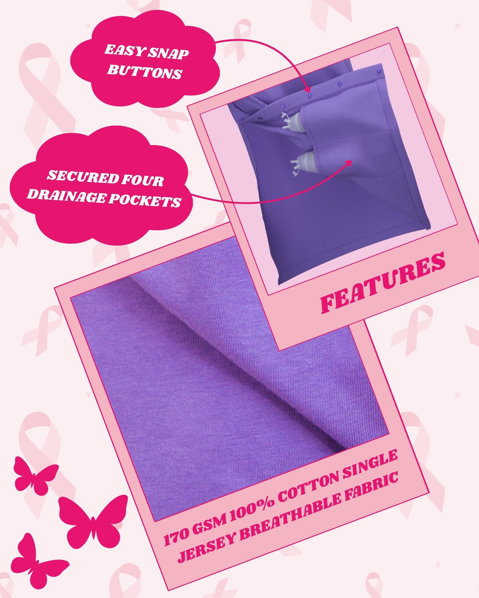 VIBES MediCare Mastectomy Recovery Tank Top with Four Drain Pockets & Snap-Access – Comfortable Post-Surgery Healing for Women(Purple)